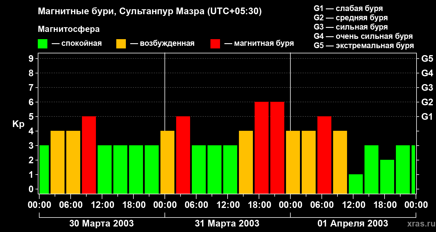 Магнитные бури в Сультанпур Мазре — 1 апреля 2003 года