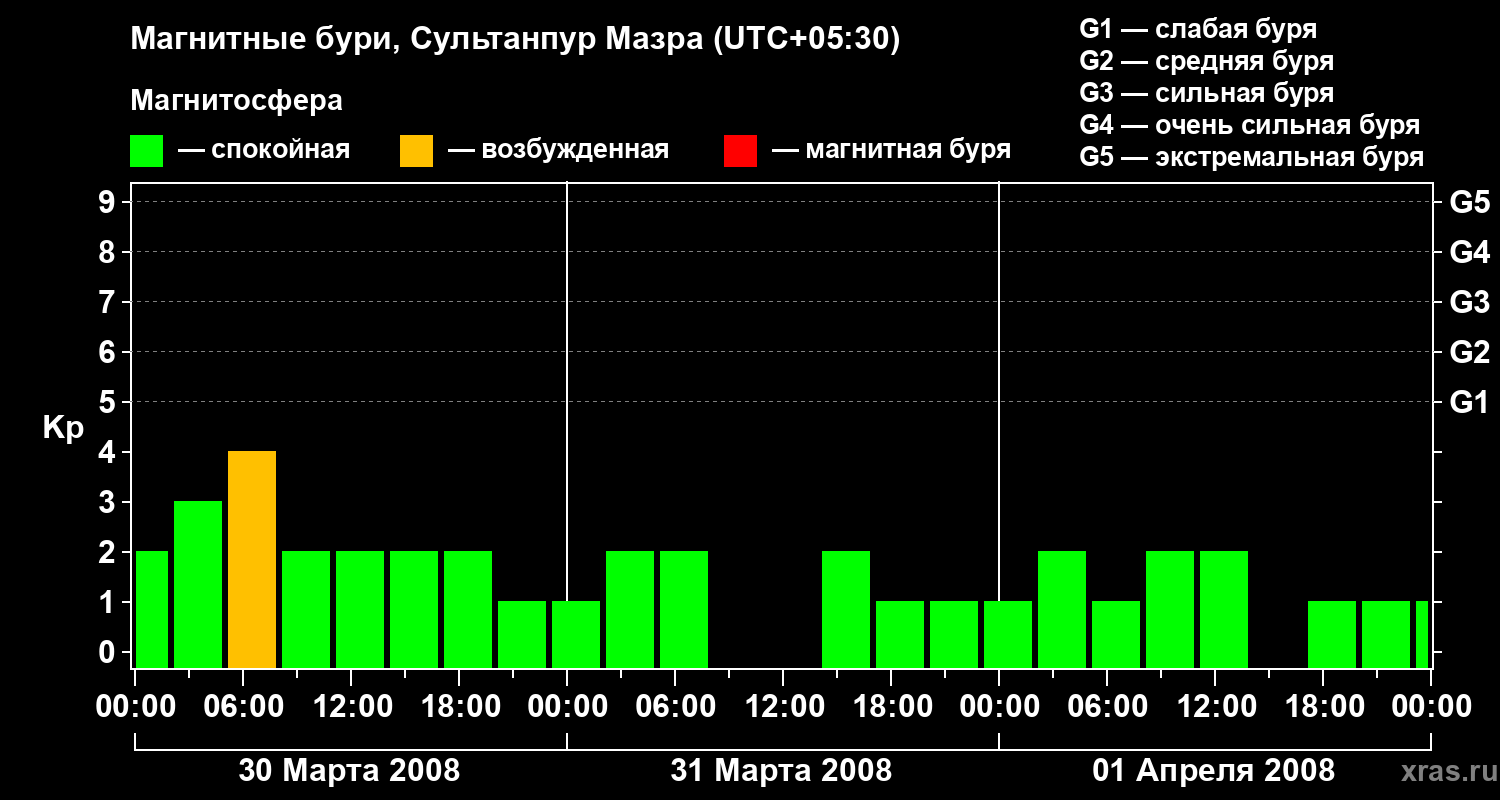 Магнитные бури в Сультанпур Мазре 1 апреля 2008 года
