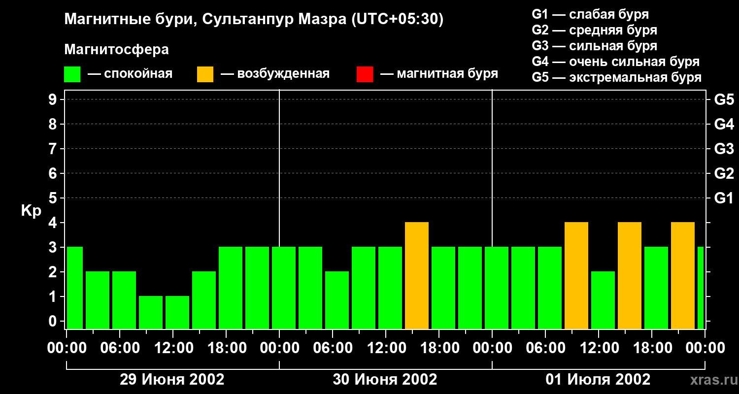 Магнитные бури в Сультанпур Мазре — 1 июля 2002 года
