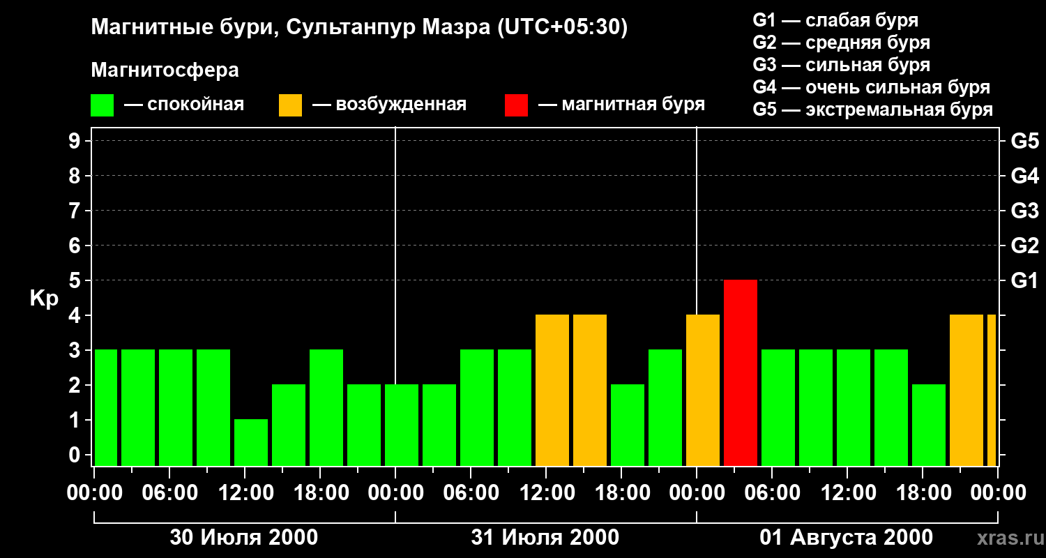 Магнитные бури в Сультанпур Мазре 1 августа 2000 года
