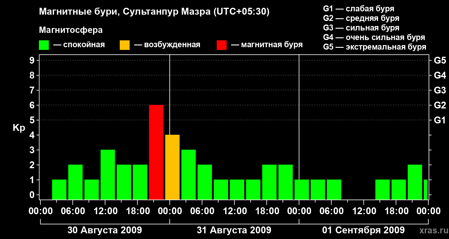 Магнитные бури в Сультанпур Мазре 1 сентября 2009 года