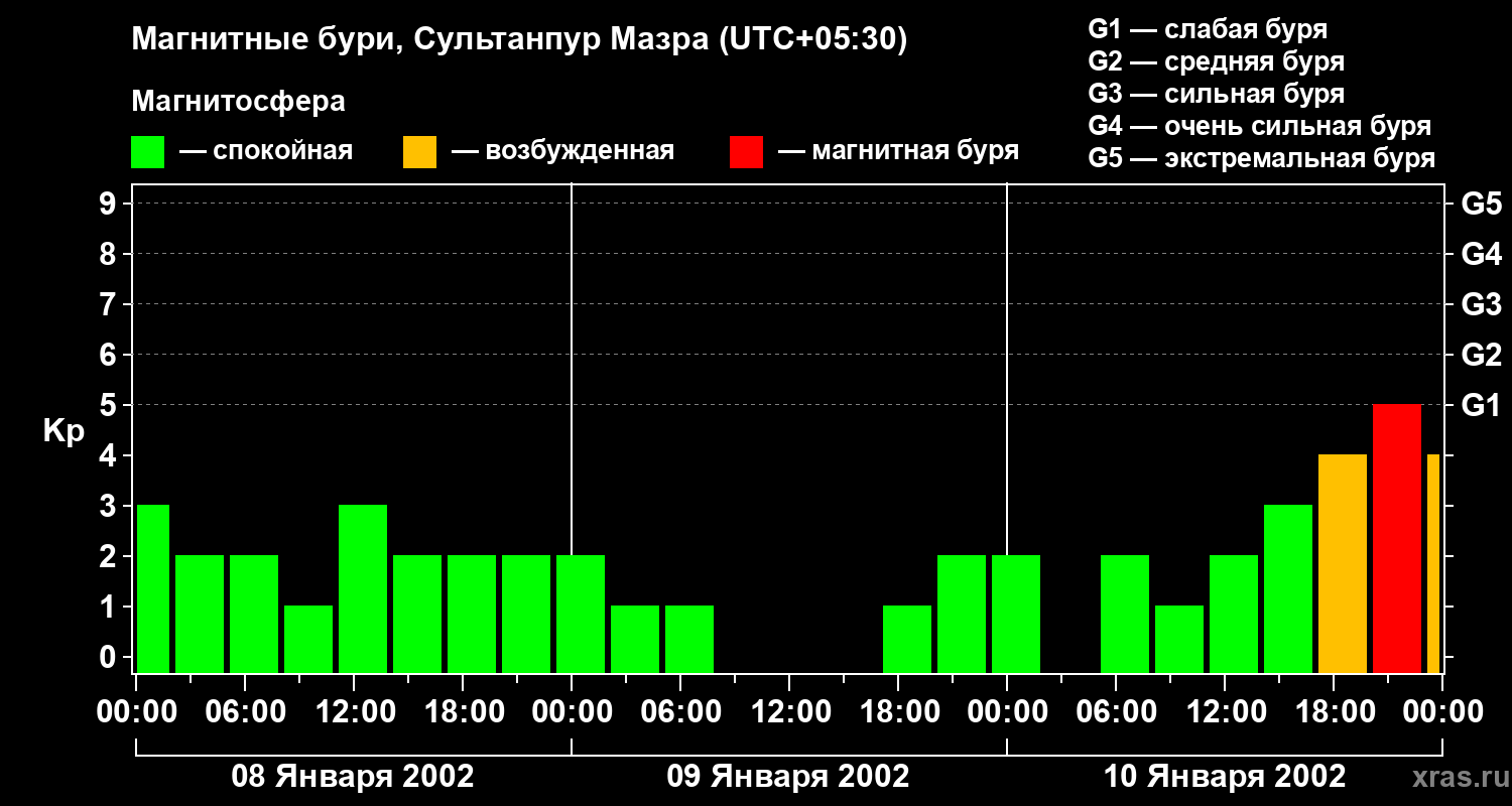 Магнитные бури в Сультанпур Мазре — 10 января 2002 года