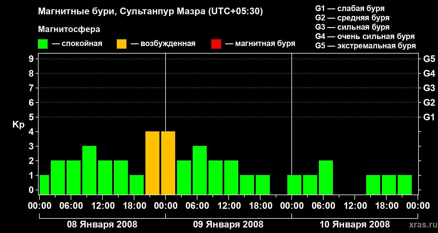 Магнитные бури в Сультанпур Мазре — 10 января 2008 года