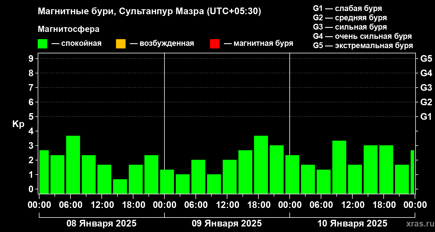 Магнитные бури в Сультанпур Мазре — 10 января 2025 года