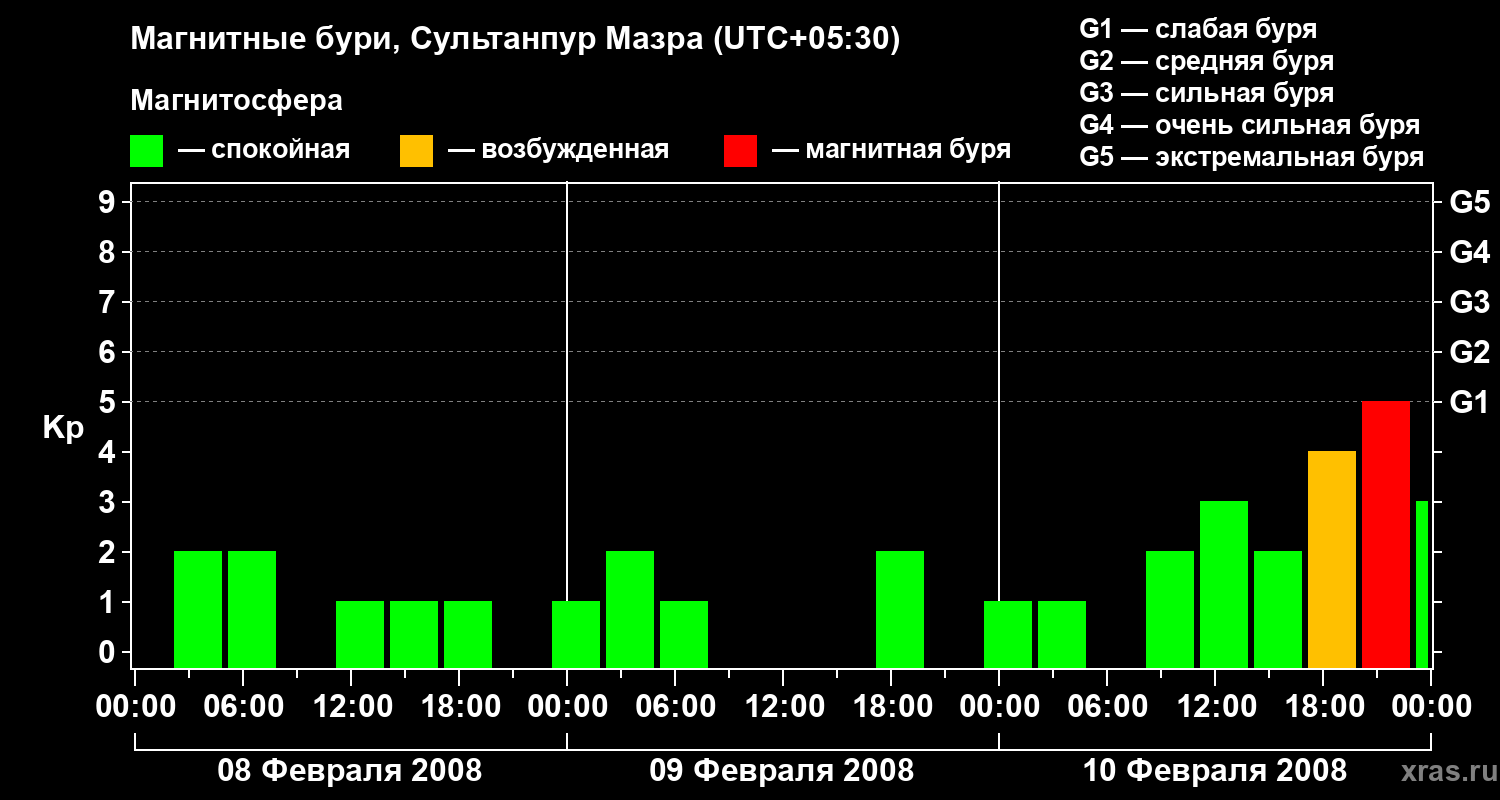 Магнитные бури в Сультанпур Мазре 10 февраля 2008 года
