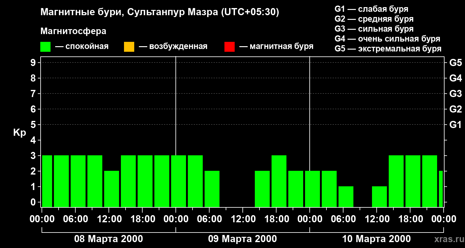Магнитные бури в Сультанпур Мазре 10 марта 2000 года