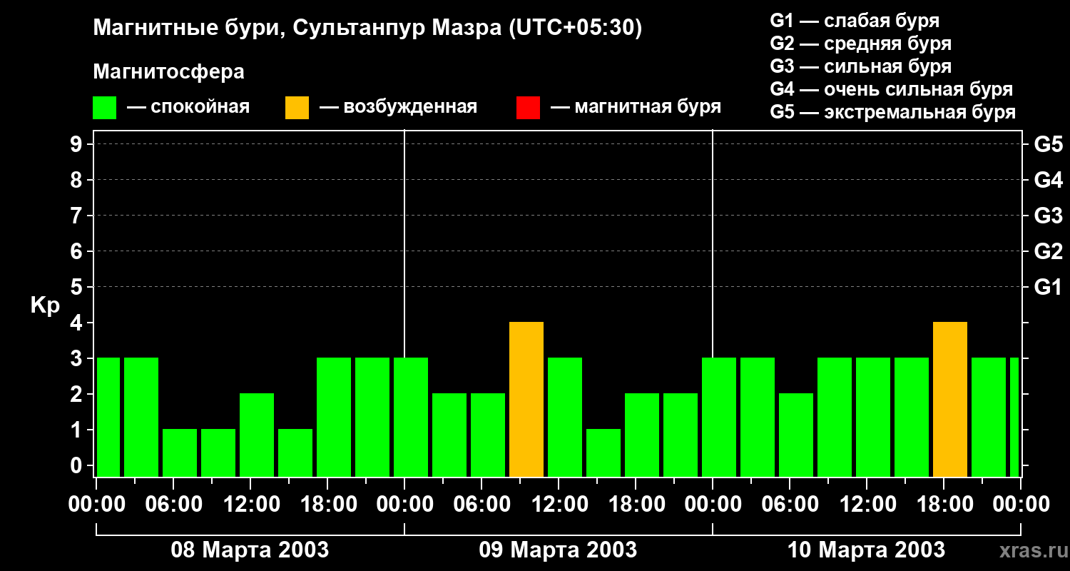Магнитные бури в Сультанпур Мазре 10 марта 2003 года