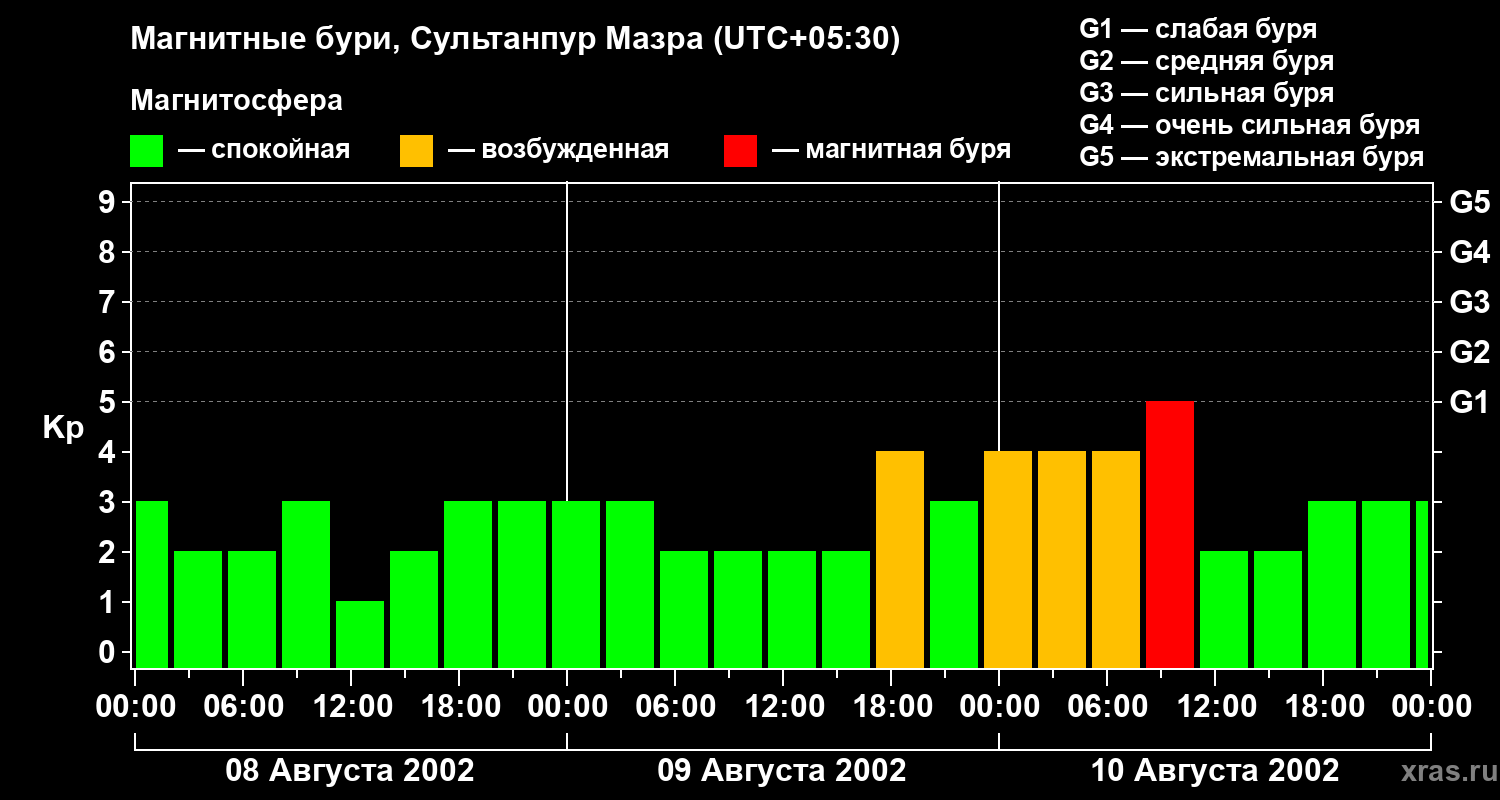 Магнитные бури в Сультанпур Мазре 10 августа 2002 года
