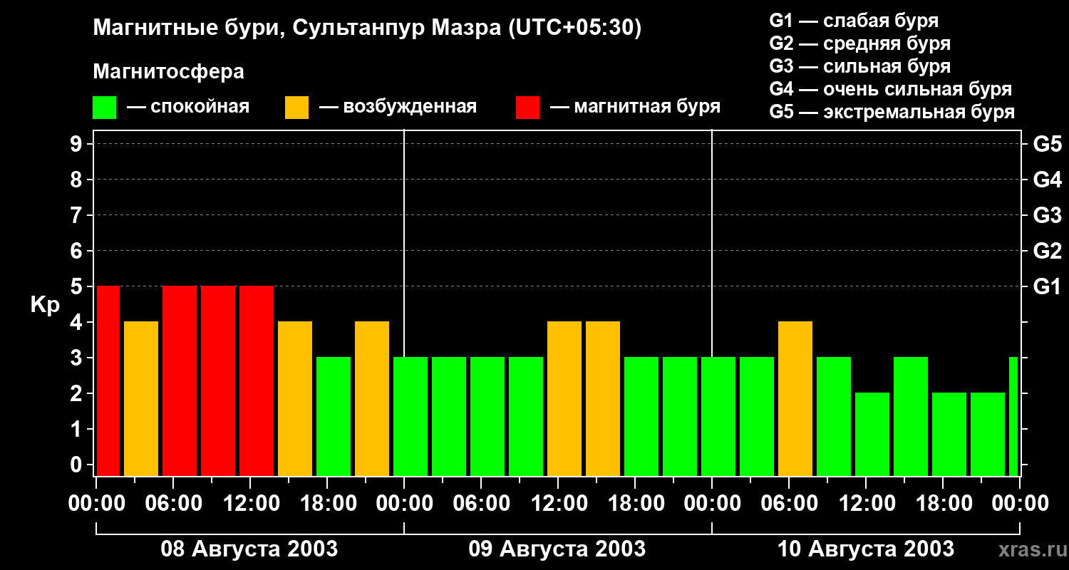 Магнитные бури в Сультанпур Мазре 10 августа 2003 года