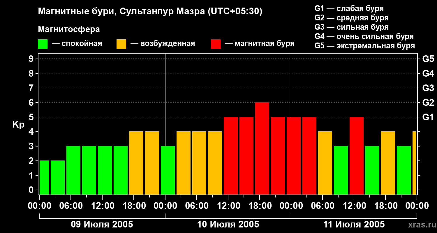 Магнитные бури в Сультанпур Мазре — 11 июля 2005 года