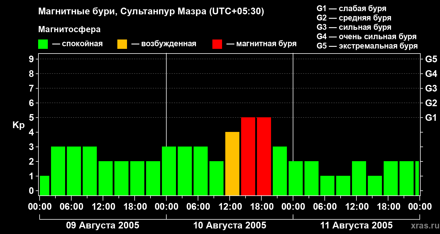 Магнитные бури в Сультанпур Мазре в августе 2005 года