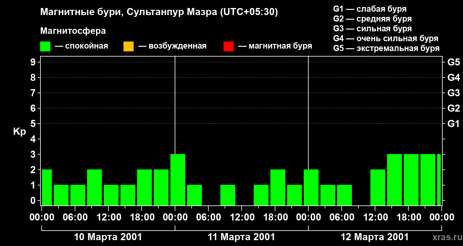 Магнитные бури в Сультанпур Мазре 12 марта 2001 года