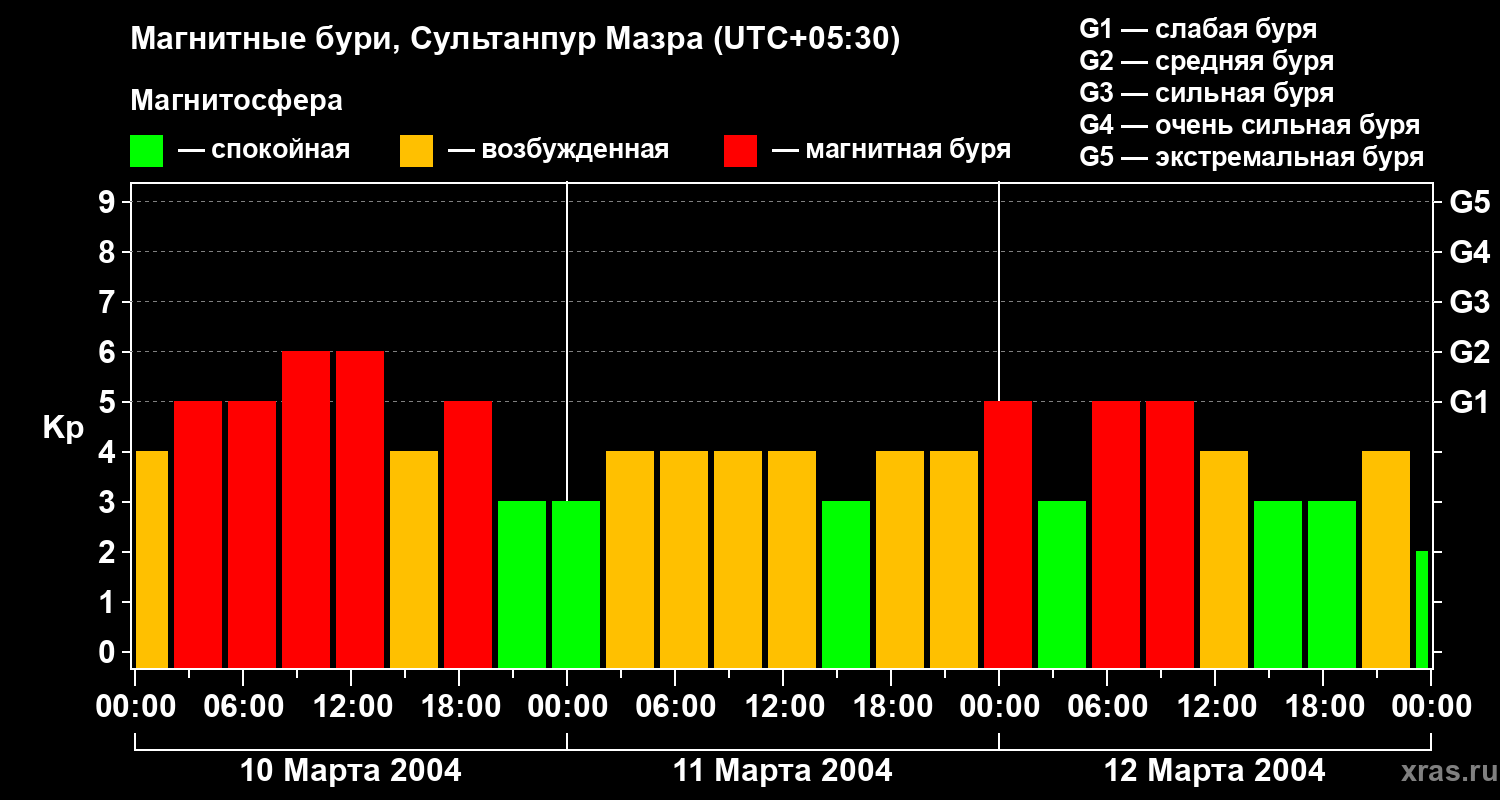 Магнитные бури в Сультанпур Мазре — 12 марта 2004 года