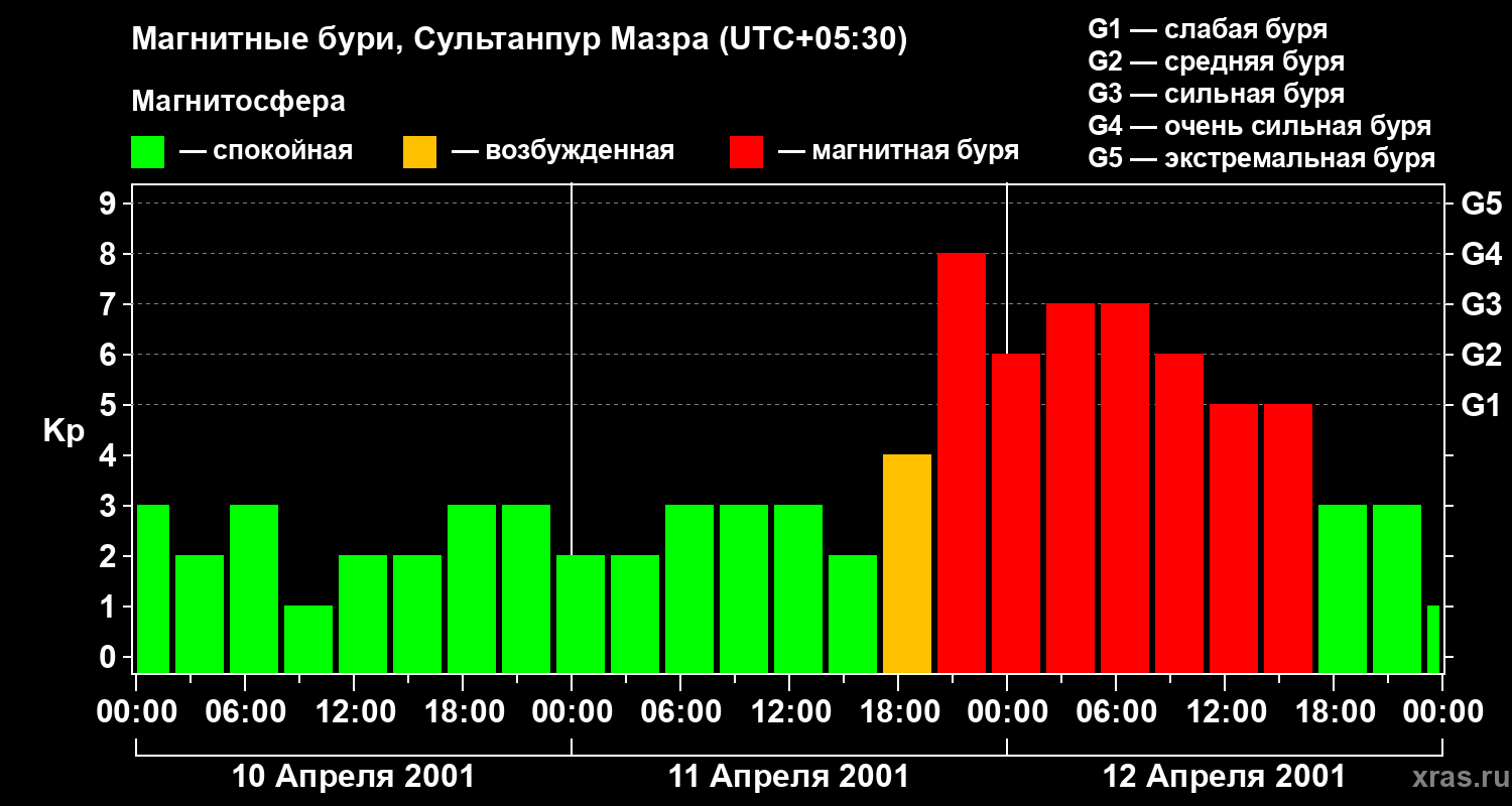Магнитные бури в Сультанпур Мазре 12 апреля 2001 года