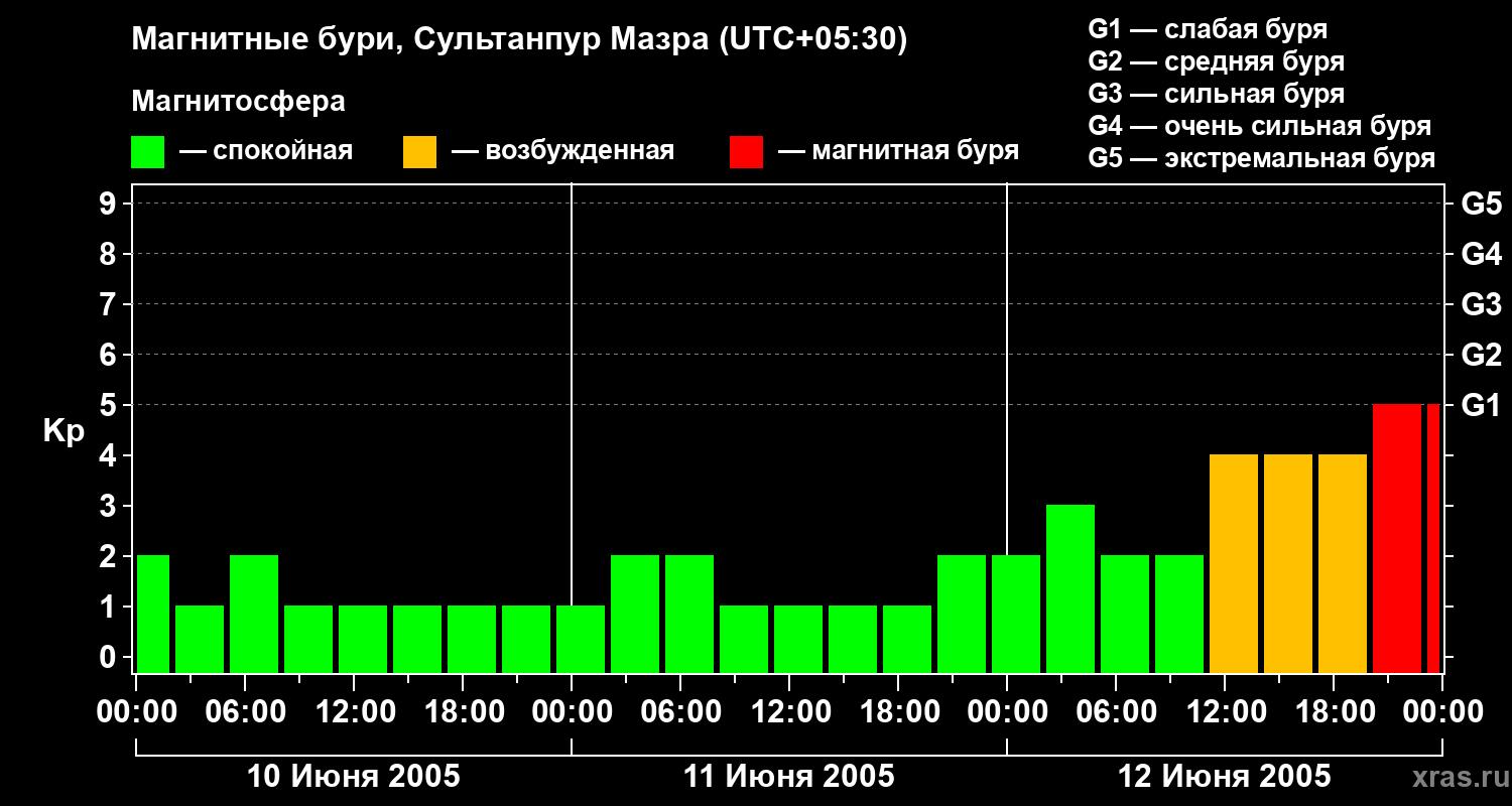 Магнитные бури в Сультанпур Мазре — 12 июня 2005 года