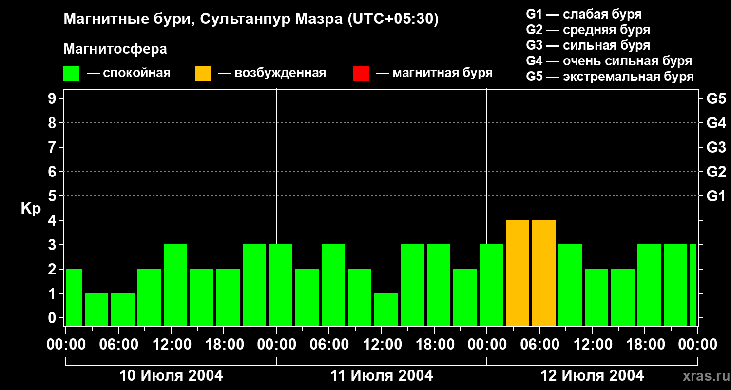 Магнитные бури в Сультанпур Мазре 12 июля 2004 года