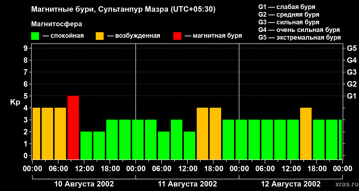 Магнитные бури в Сультанпур Мазре 12 августа 2002 года