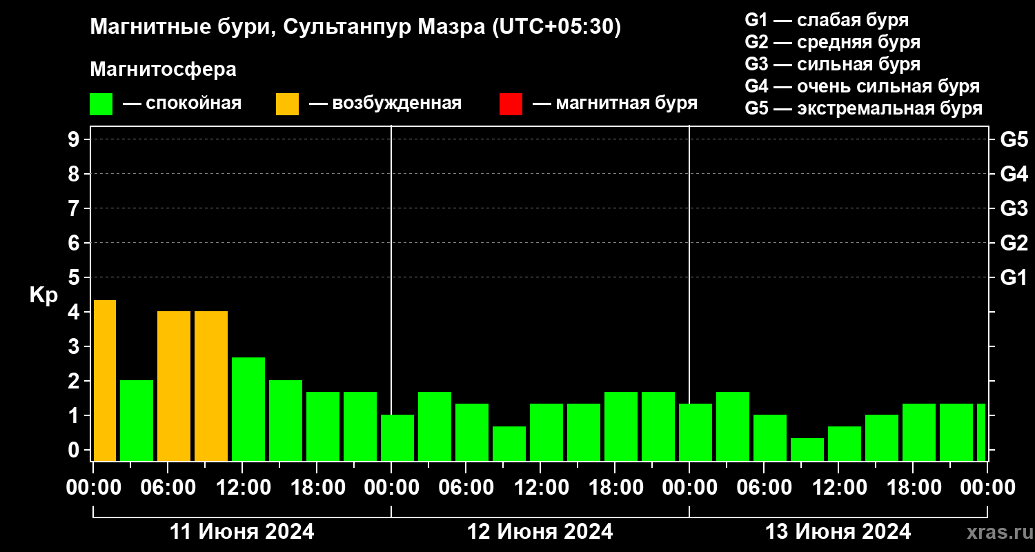 Магнитные бури в Сультанпур Мазре — 13 июня 2024 года