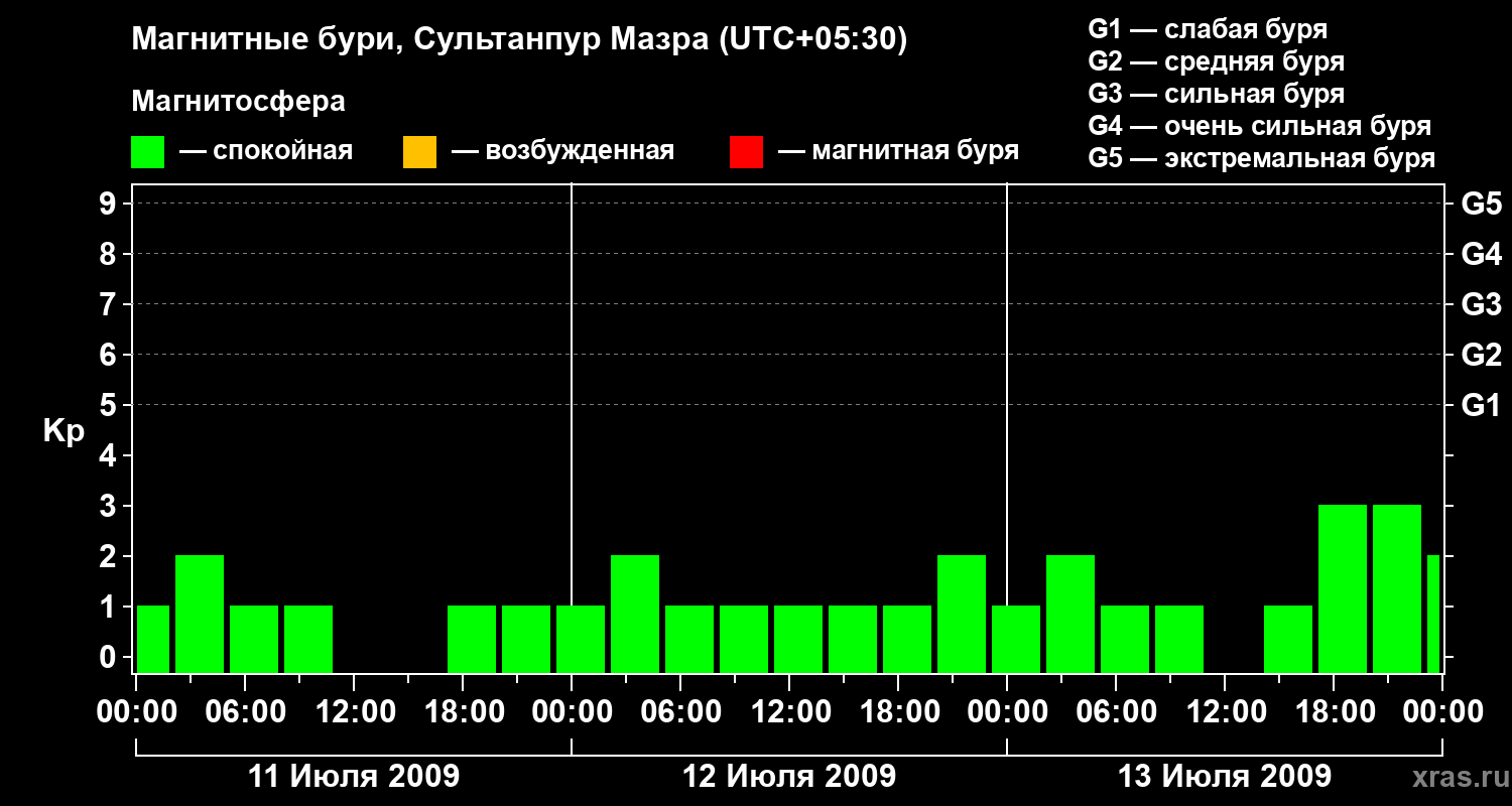Магнитные бури в Сультанпур Мазре — 13 июля 2009 года