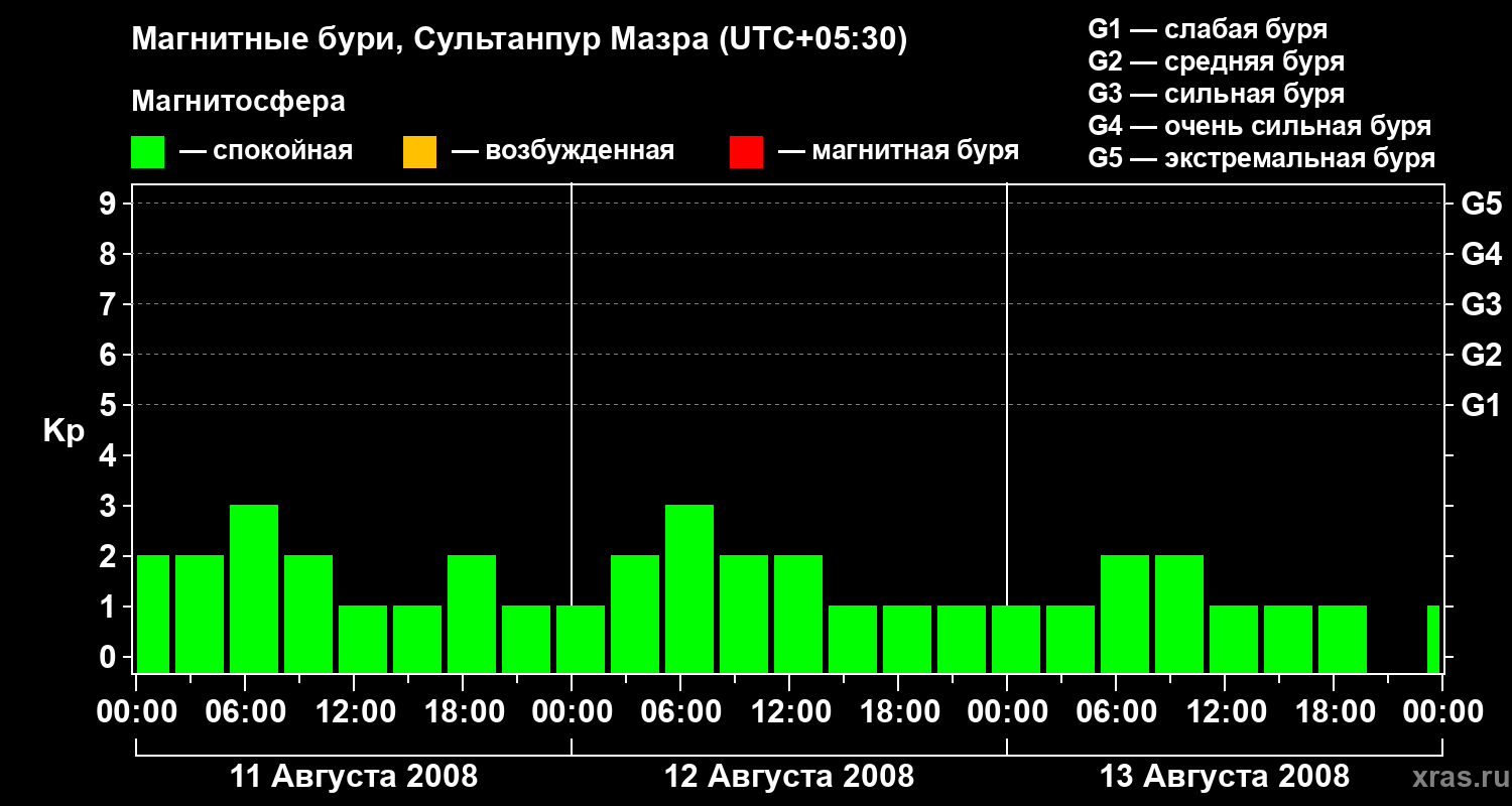 Магнитные бури в Сультанпур Мазре 13 августа 2008 года
