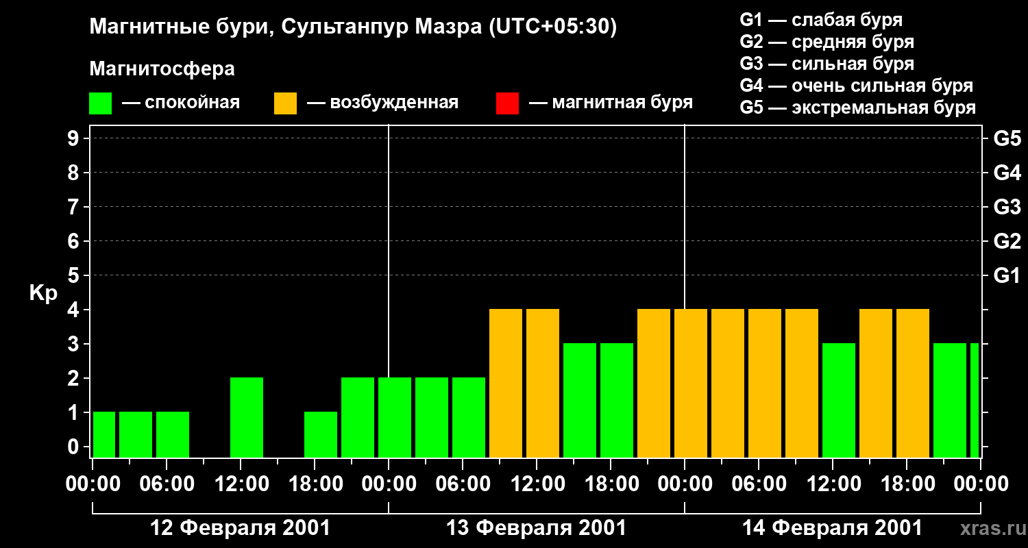 Магнитные бури в Сультанпур Мазре — 14 февраля 2001 года