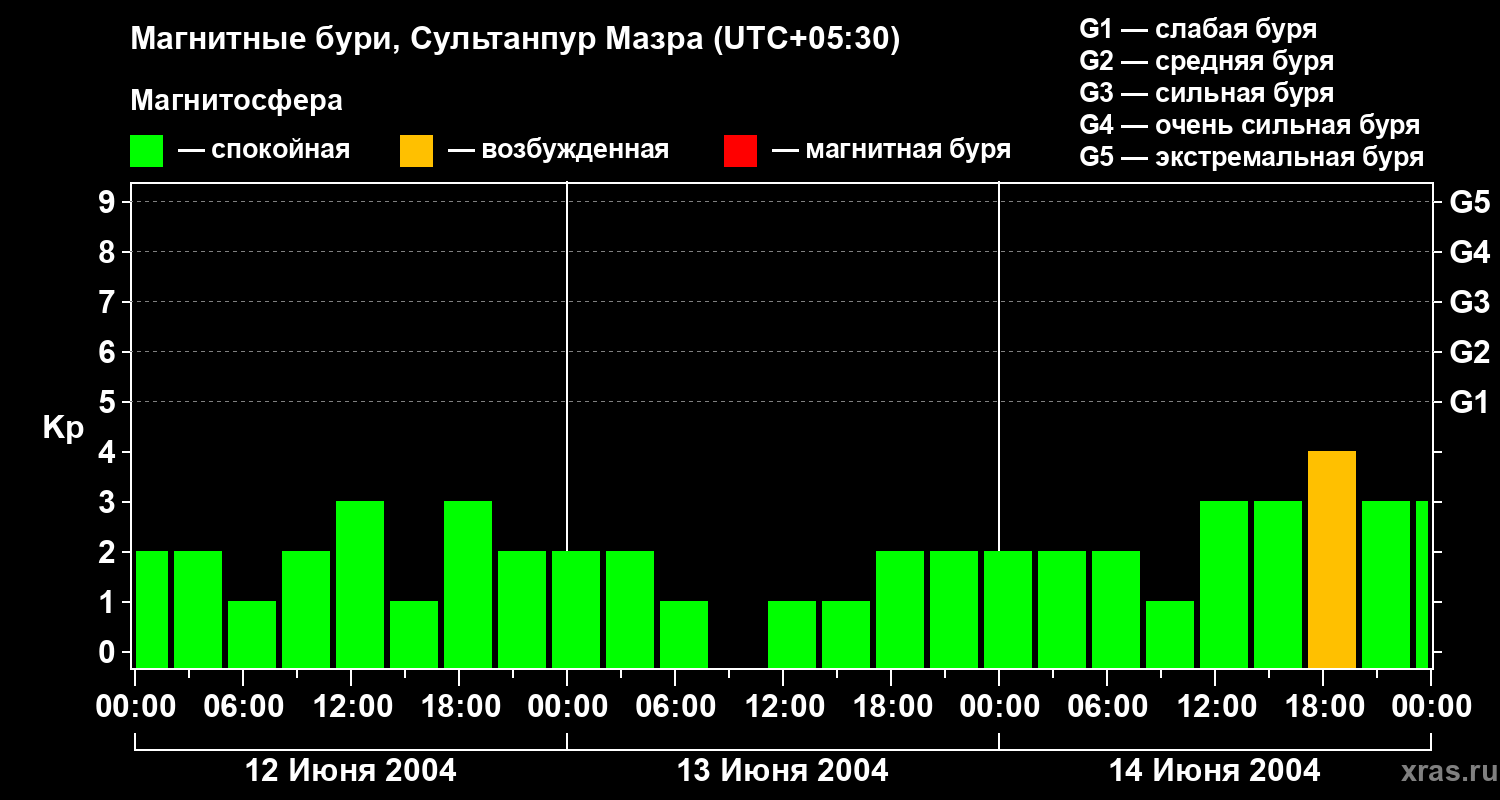 Магнитные бури в Сультанпур Мазре 14 июня 2004 года