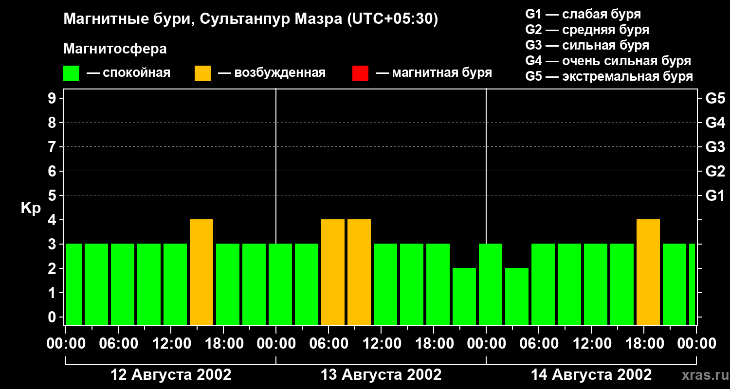 Магнитные бури в Сультанпур Мазре 14 августа 2002 года