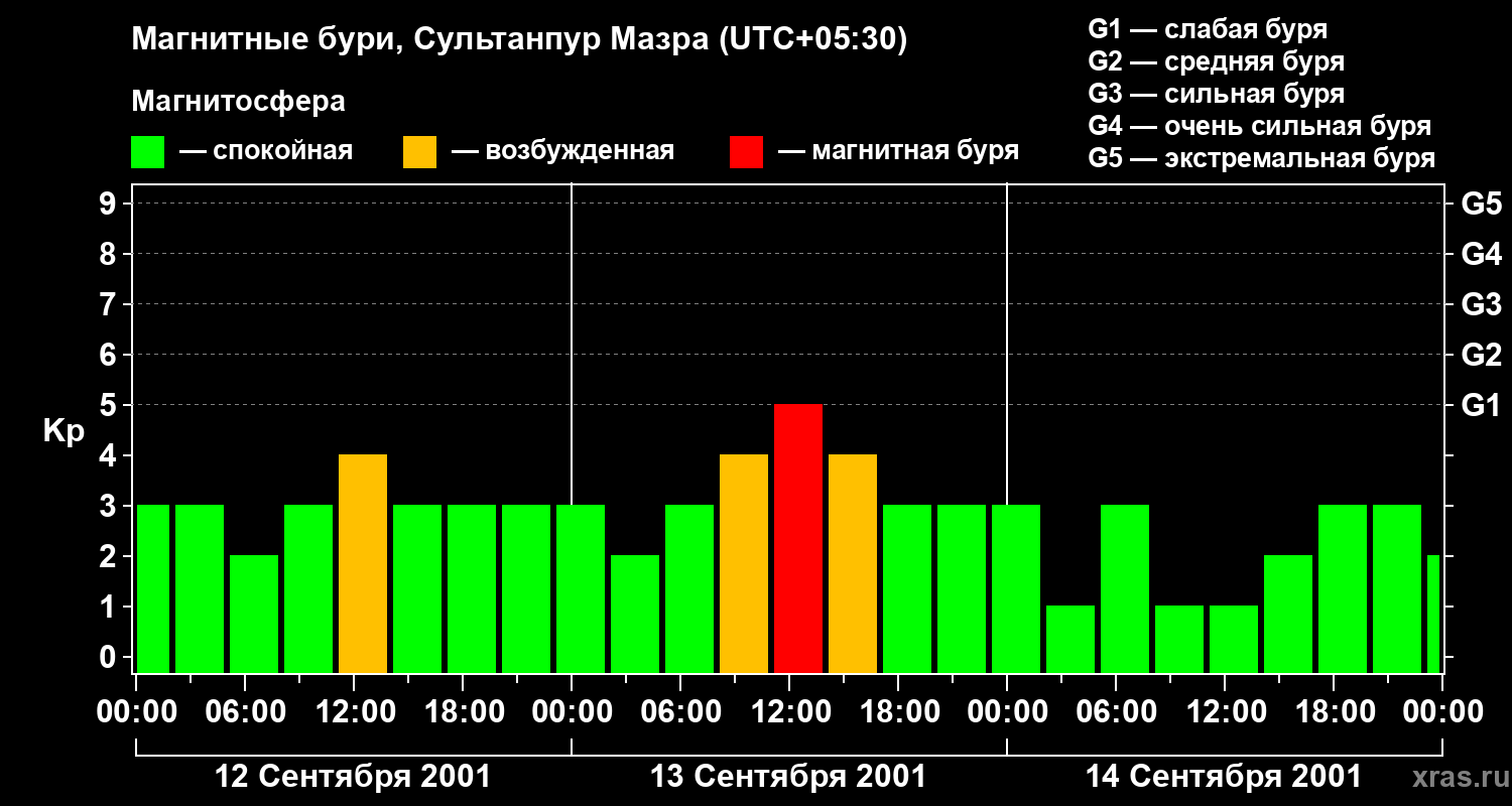 Магнитные бури в Сультанпур Мазре 14 сентября 2001 года
