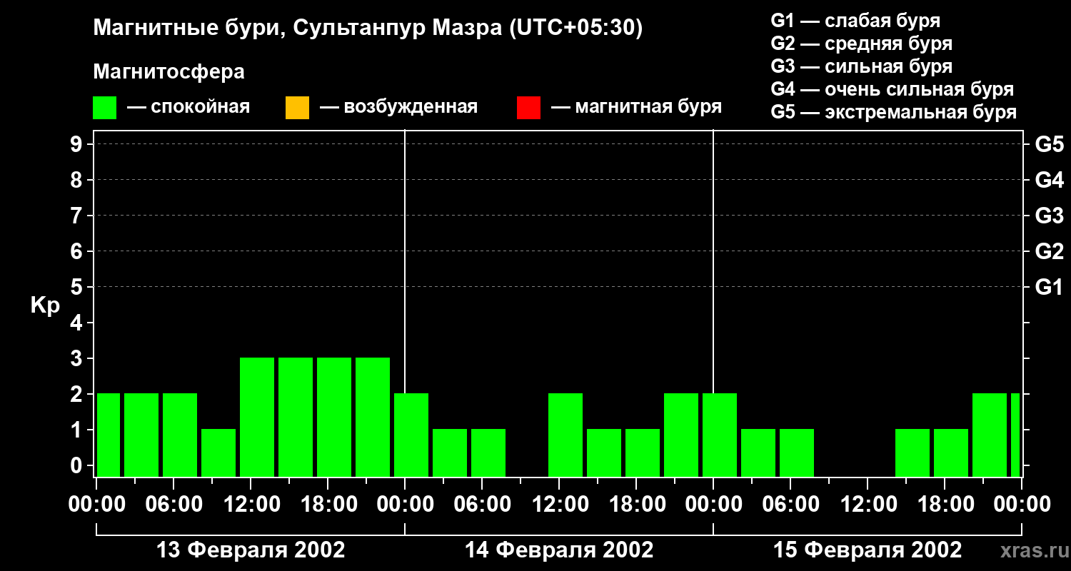Магнитные бури в Сультанпур Мазре 15 февраля 2002 года