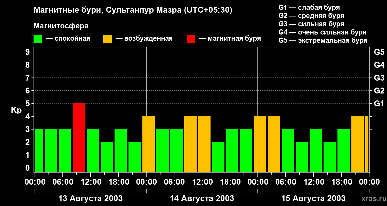 Магнитные бури в Сультанпур Мазре 15 августа 2003 года