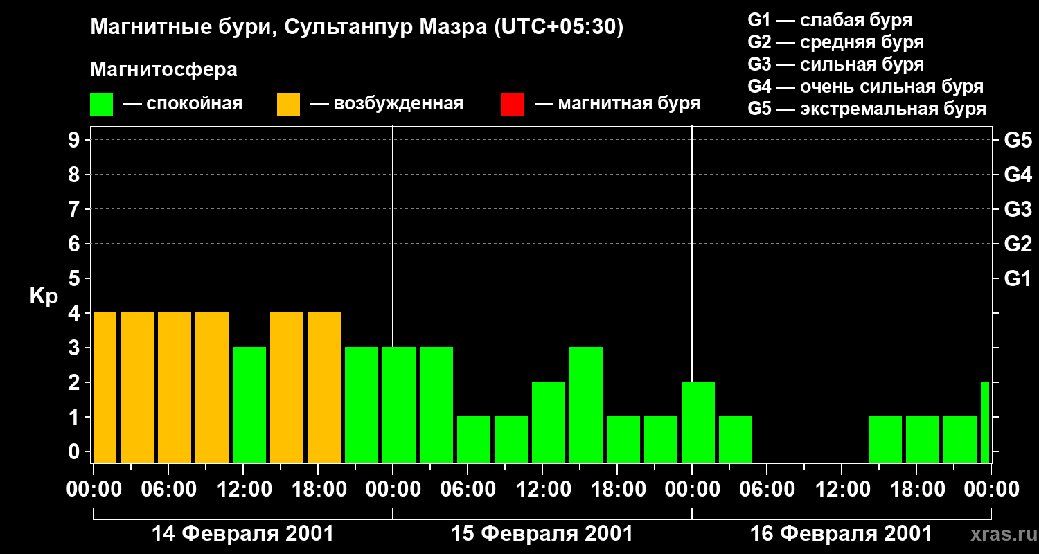 Магнитные бури в Сультанпур Мазре 16 февраля 2001 года