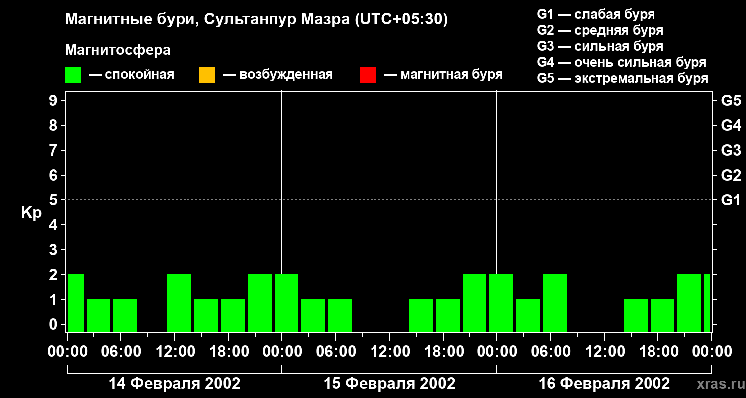 Магнитные бури в Сультанпур Мазре 16 февраля 2002 года