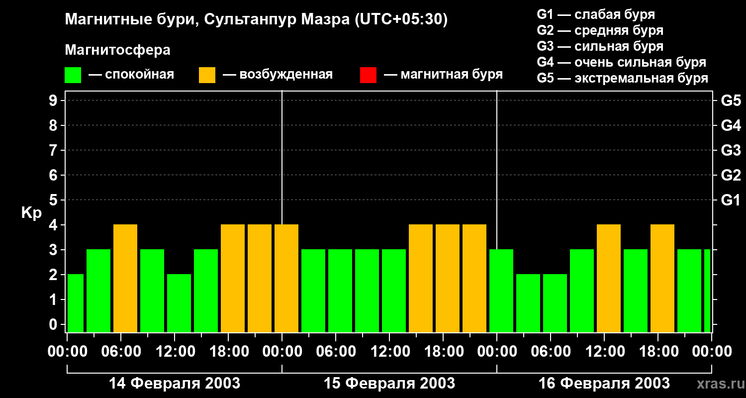 Магнитные бури в Сультанпур Мазре 16 февраля 2003 года
