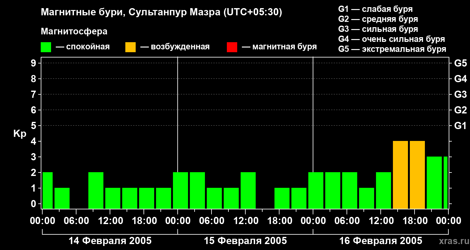 Магнитные бури в Сультанпур Мазре — 16 февраля 2005 года