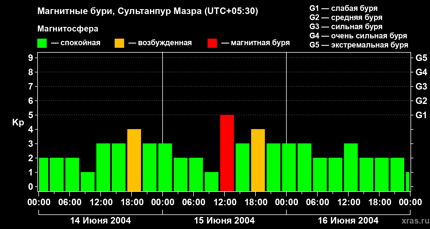Магнитные бури в Сультанпур Мазре 16 июня 2004 года