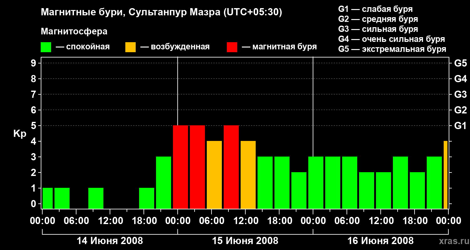Магнитные бури в Сультанпур Мазре 16 июня 2008 года