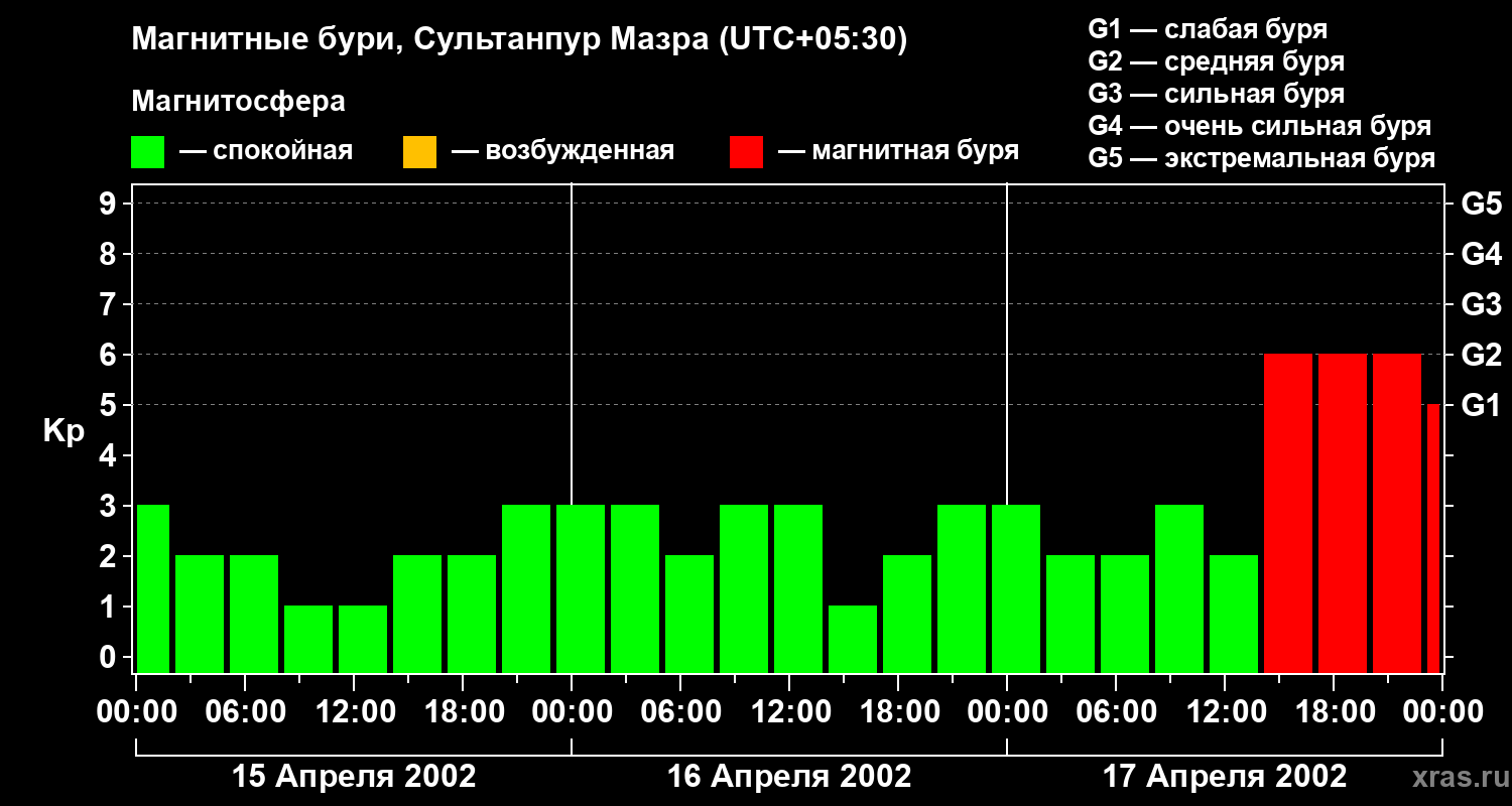 Магнитные бури в Сультанпур Мазре 17 апреля 2002 года
