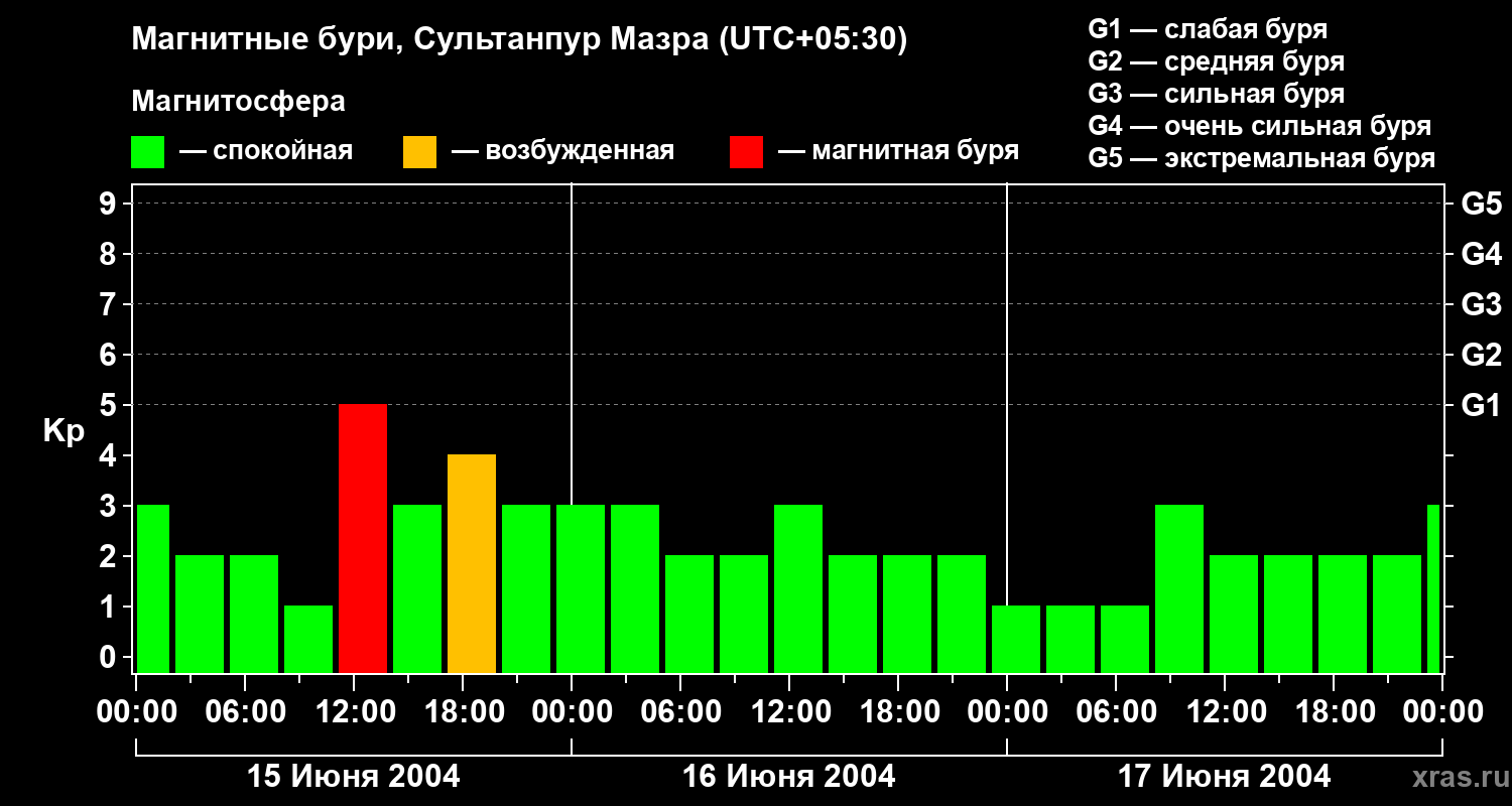 Магнитные бури в Сультанпур Мазре 17 июня 2004 года
