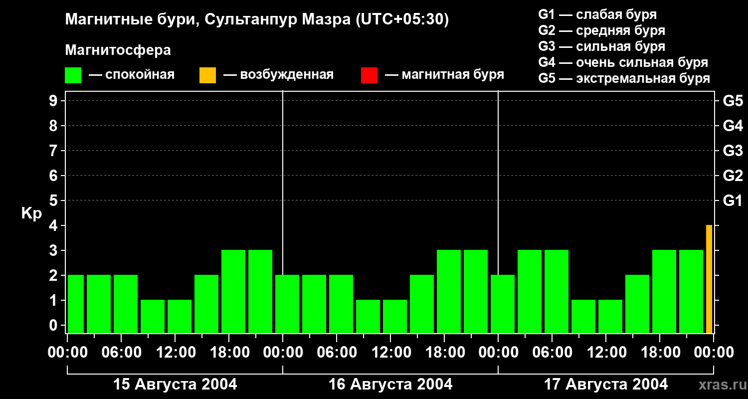 Магнитные бури в Сультанпур Мазре 17 августа 2004 года