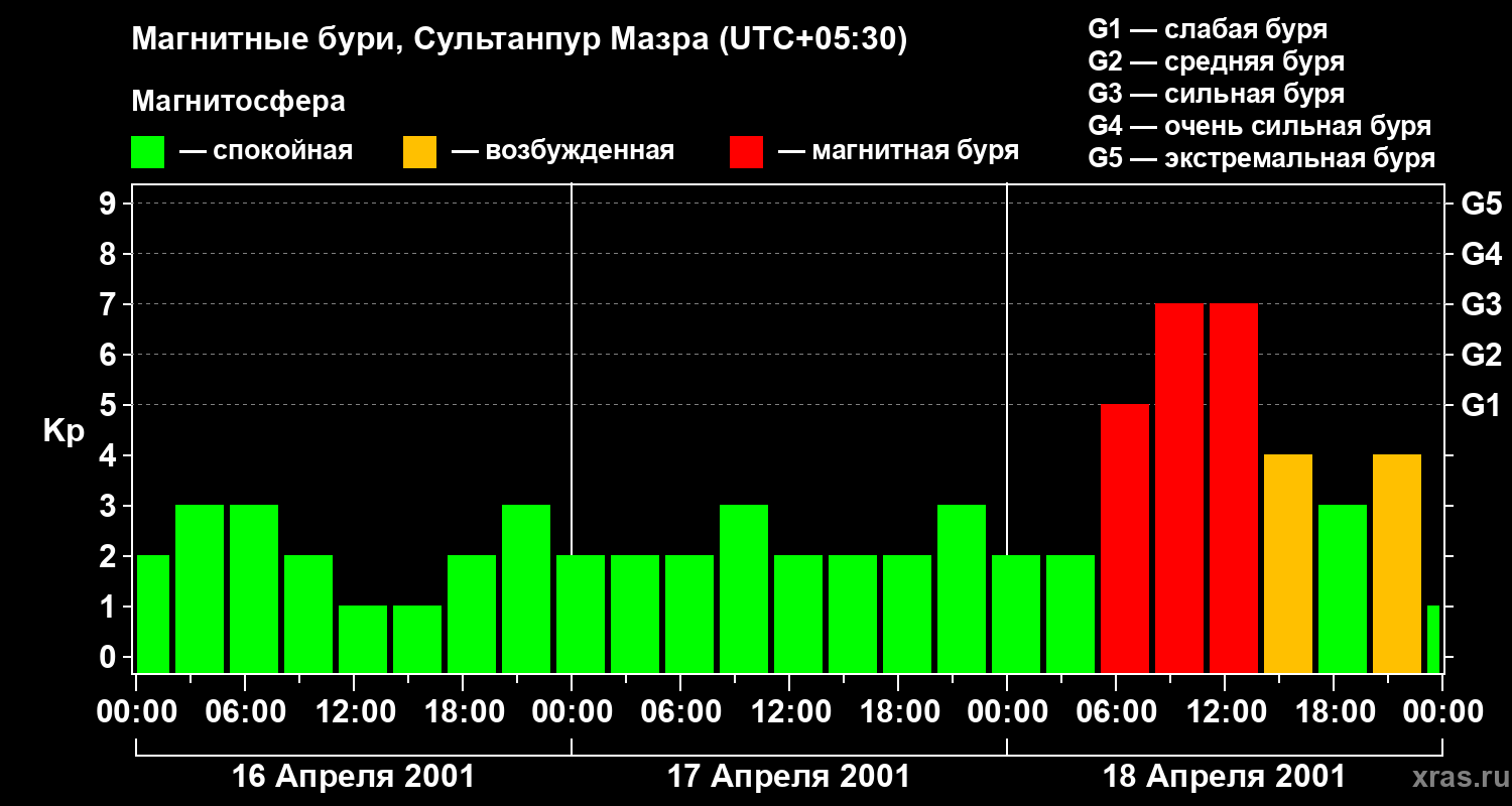 Магнитные бури в Сультанпур Мазре 18 апреля 2001 года