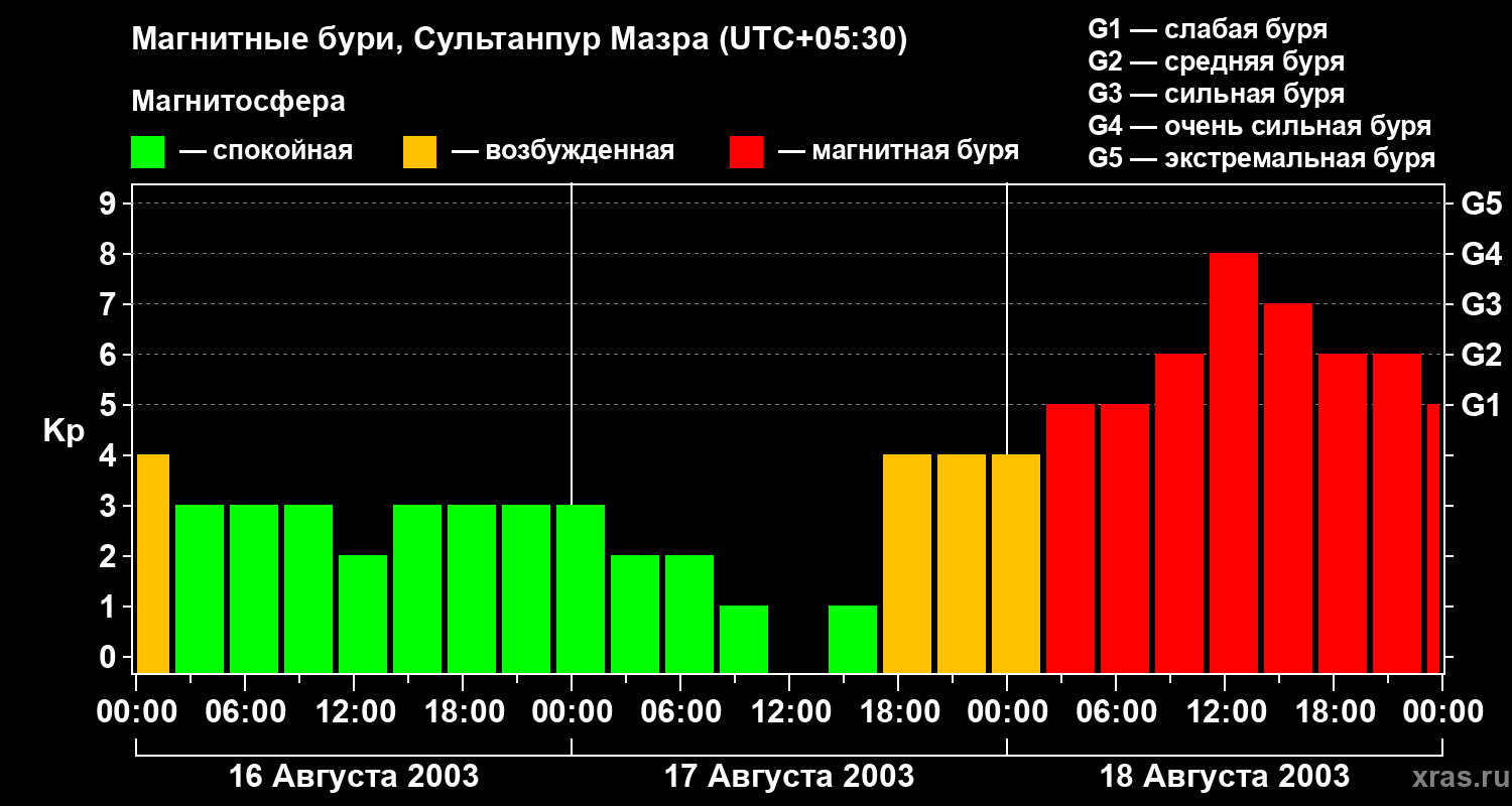 Магнитные бури в Сультанпур Мазре в августе 2003 года