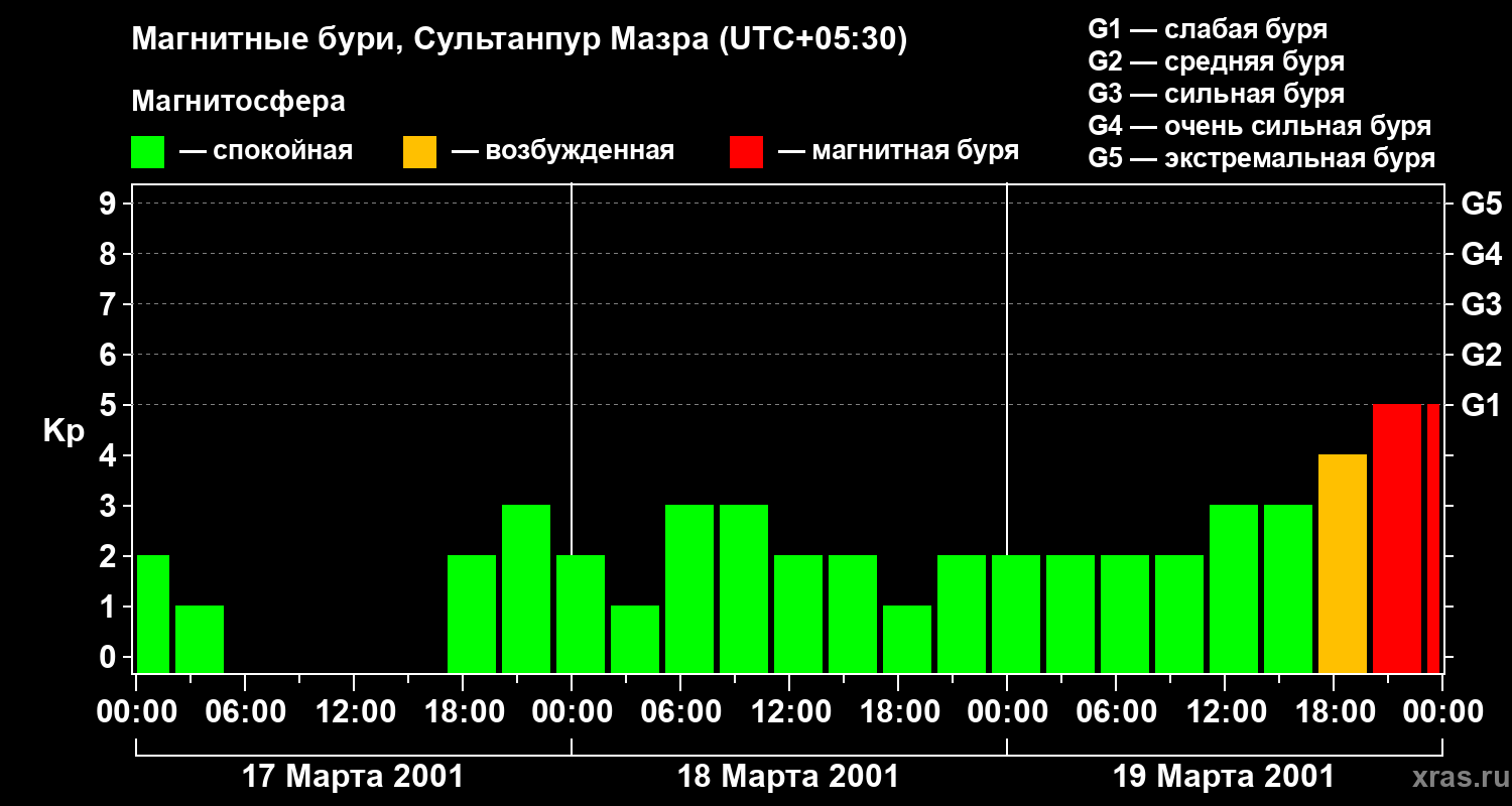 Магнитные бури в Сультанпур Мазре 19 марта 2001 года