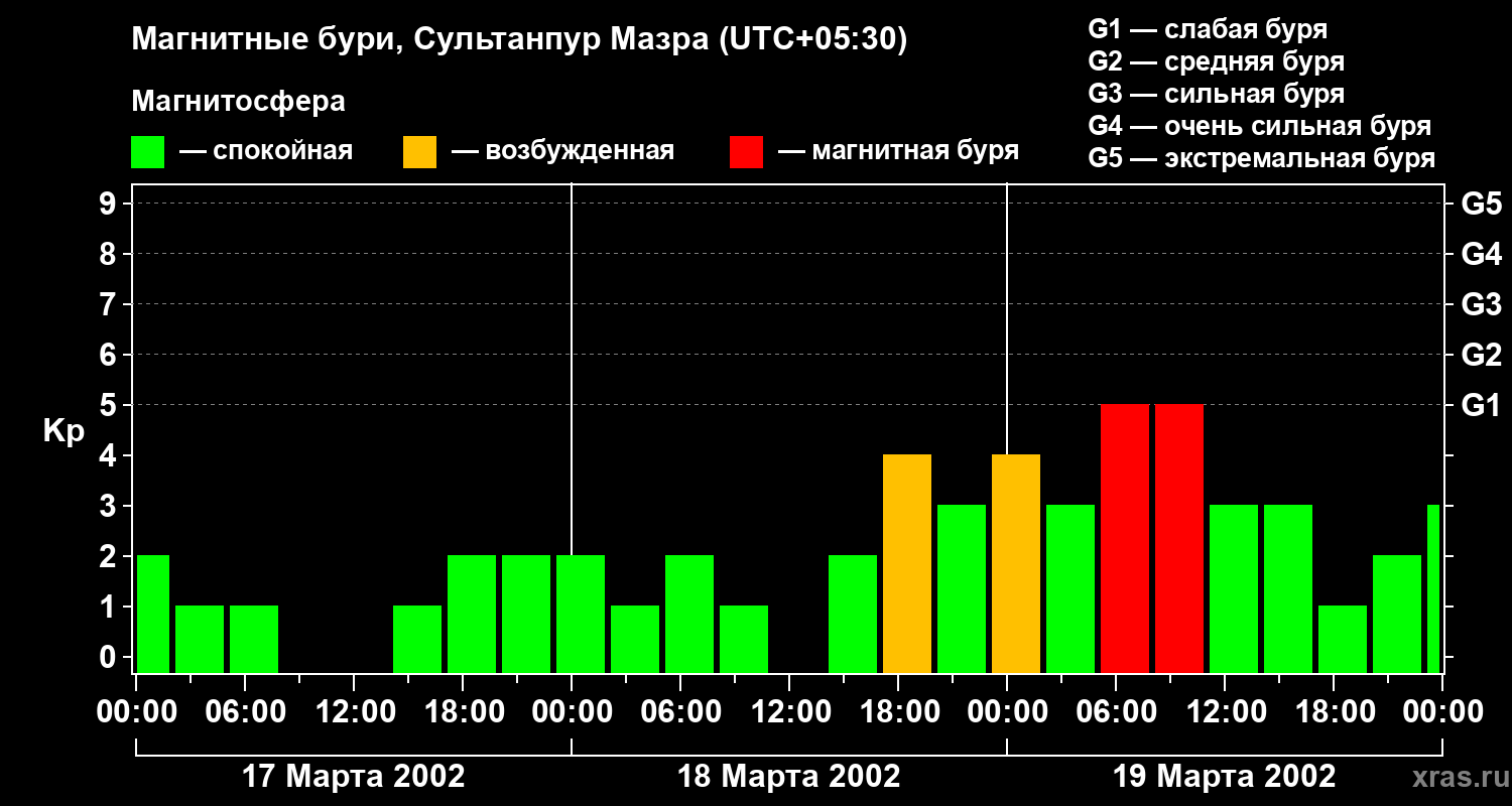 Магнитные бури в Сультанпур Мазре 19 марта 2002 года