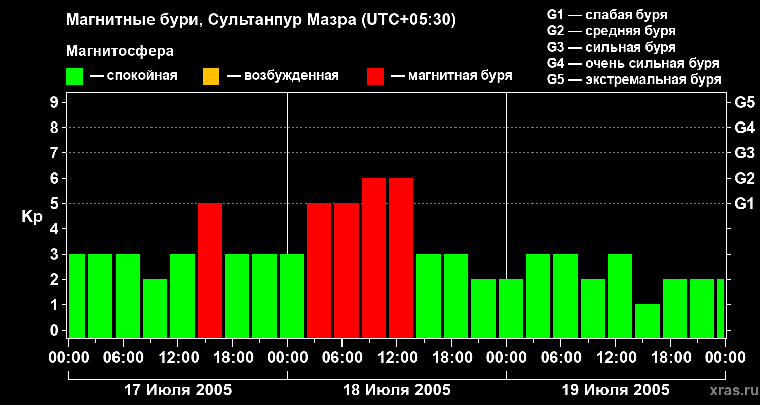 Магнитные бури в Сультанпур Мазре — 19 июля 2005 года