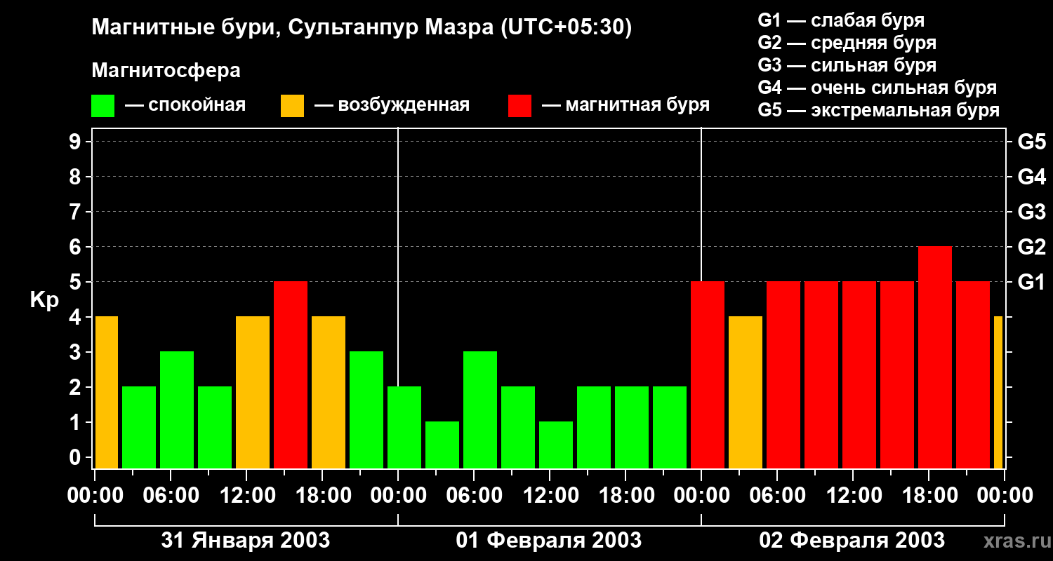 Магнитные бури в Сультанпур Мазре 2 февраля 2003 года