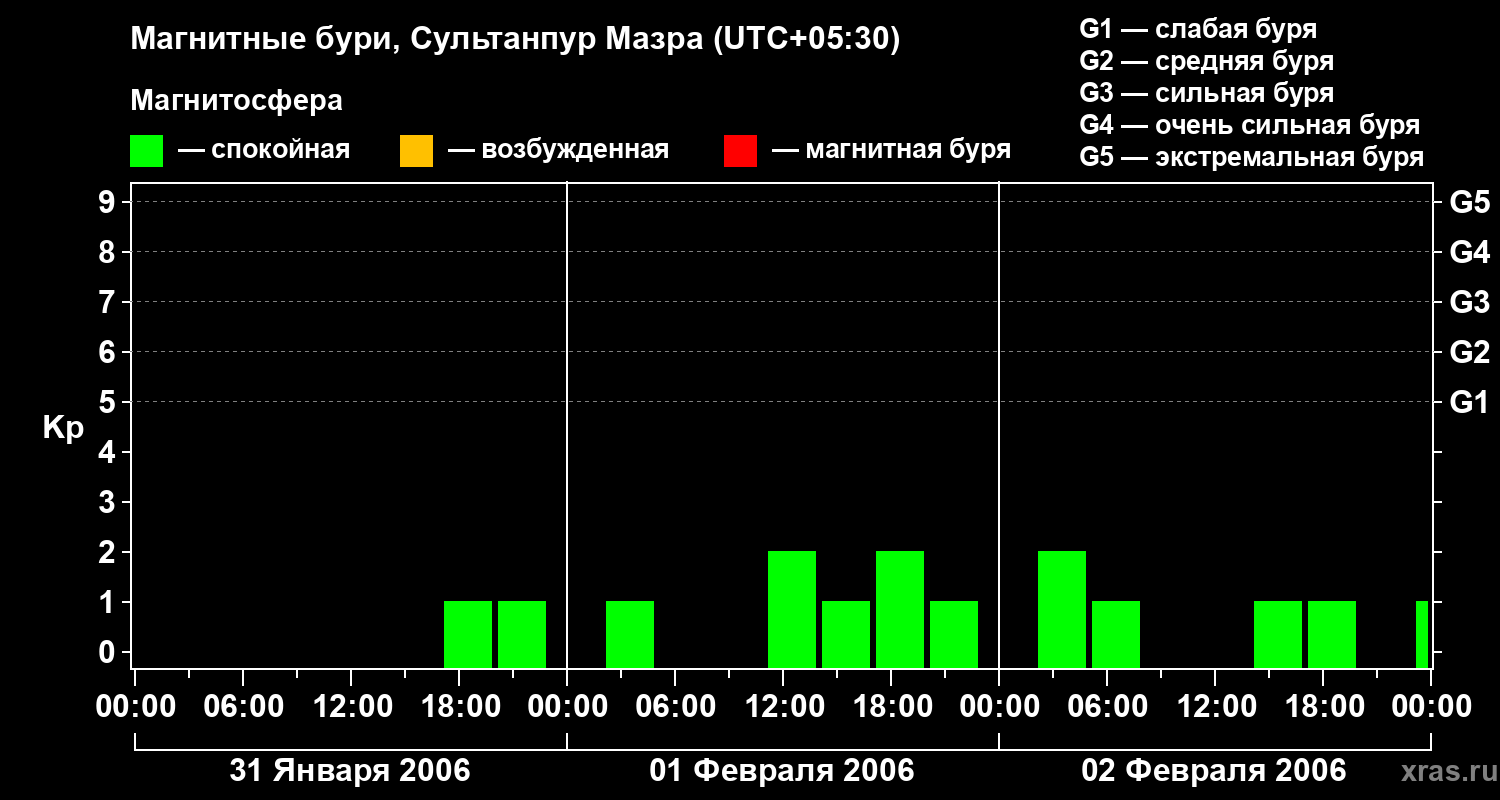 Магнитные бури в Сультанпур Мазре — 2 февраля 2006 года