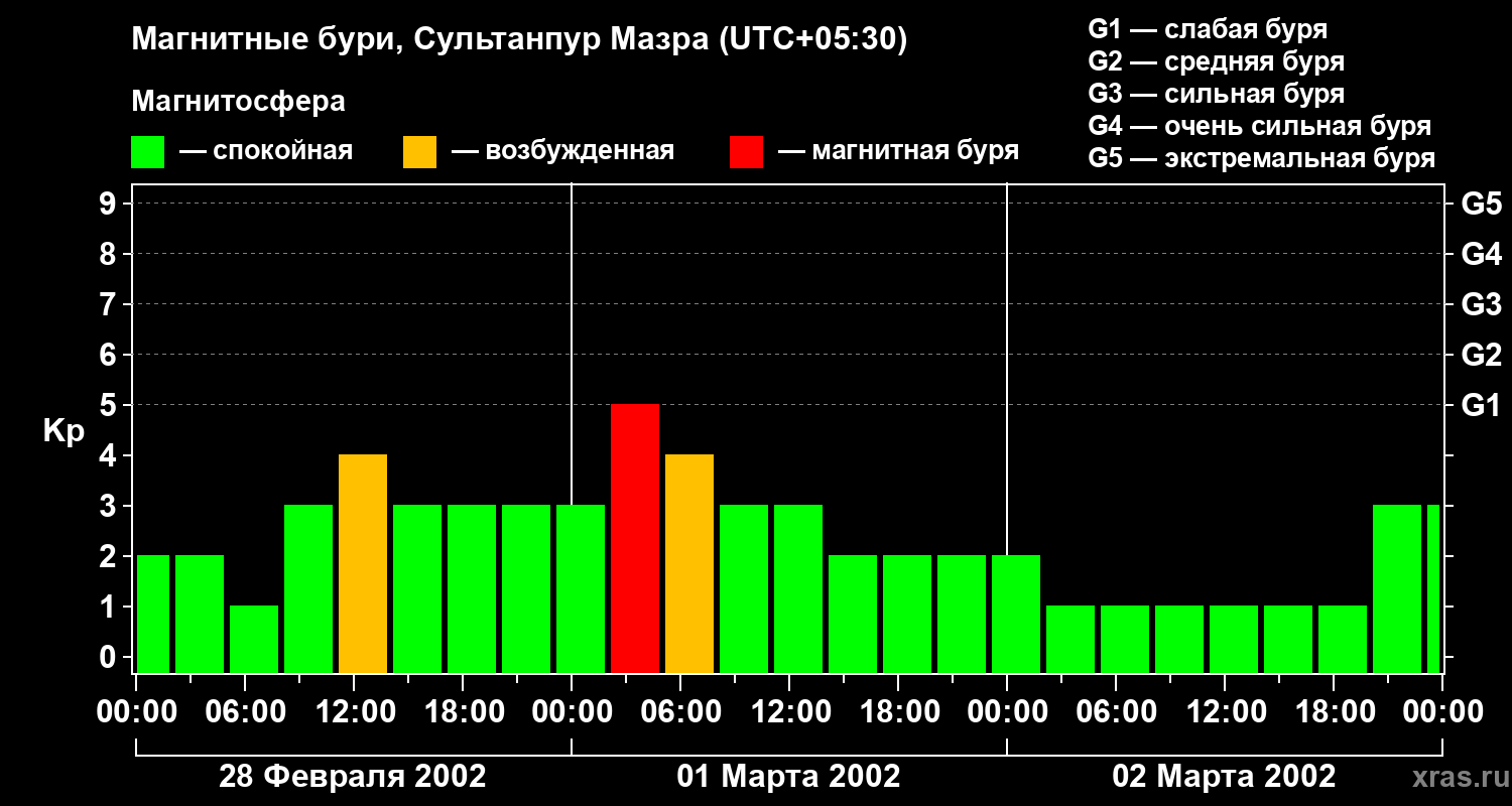 Магнитные бури в Сультанпур Мазре — 2 марта 2002 года