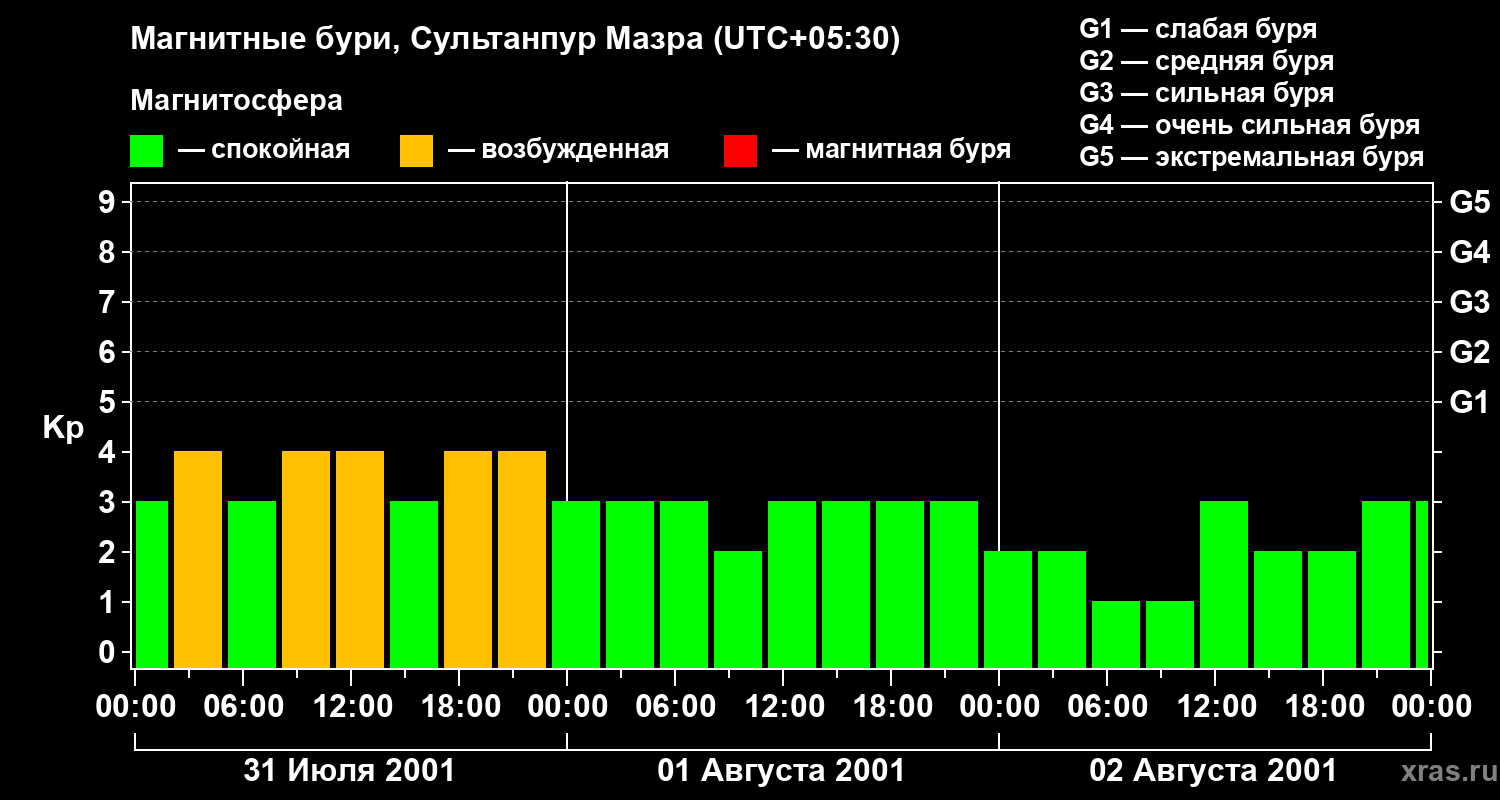 Магнитные бури в Сультанпур Мазре 2 августа 2001 года