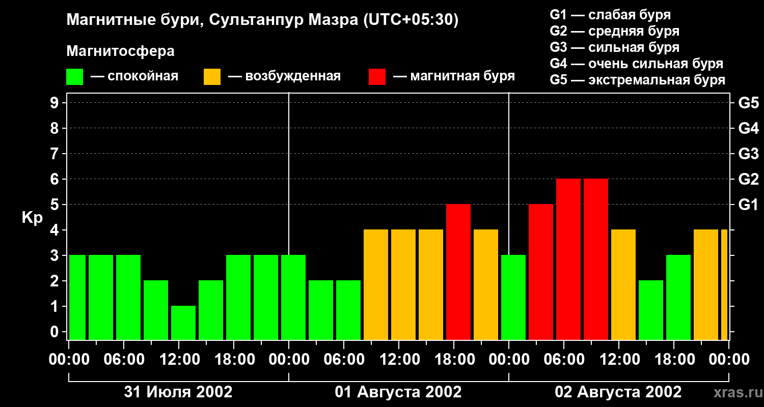 Магнитные бури в Сультанпур Мазре 2 августа 2002 года
