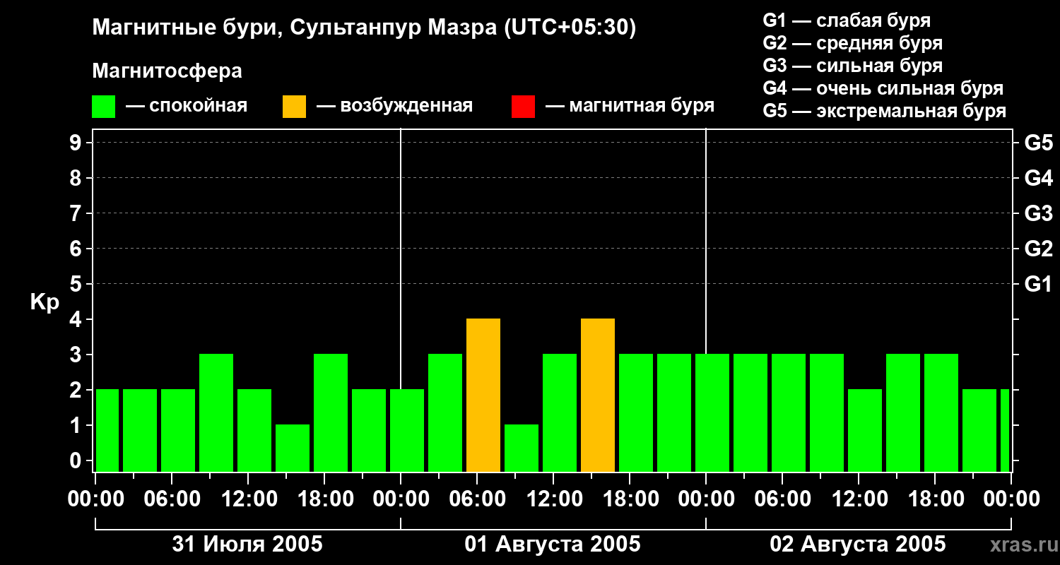 Магнитные бури в Сультанпур Мазре — 2 августа 2005 года